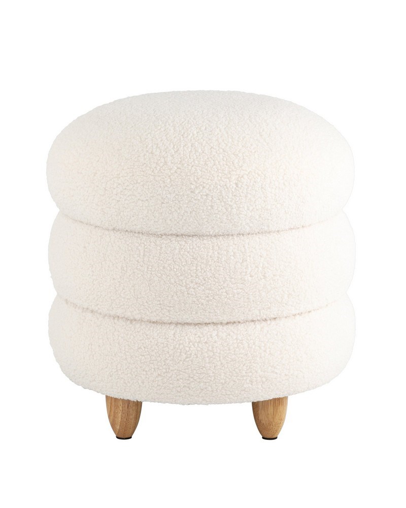 Габариты размера L (ШхГхВ) : 420х420х450 мм\; Материал каркаса : фанера\; Материал ножек : массив дерева\; Материал обивки : ткань тедди\; Цвет обивки : белый\; Вес : 4,5 кг\; Максимальная нагрузка : до 150 кг\;