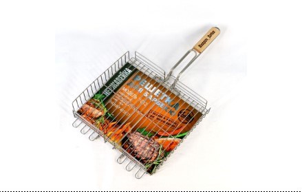 Решетка барбекю: У-012 Размер: 41х37 см Толщина прутка 6 мм и 3 мм Сталь: нержавейка AISI304 Ручка: дерево Бук Производство: Россия, ИП Рогозин Д. Л.