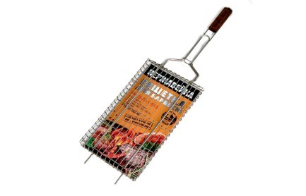 Решетка барбекю: У-013 Размер: 28х46 см Толщина прутка 6 мм и 3 мм Сталь: нержавейка AISI304 Ручка: дерево Бук Производство: Россия, ИП Рогозин Д. Л.