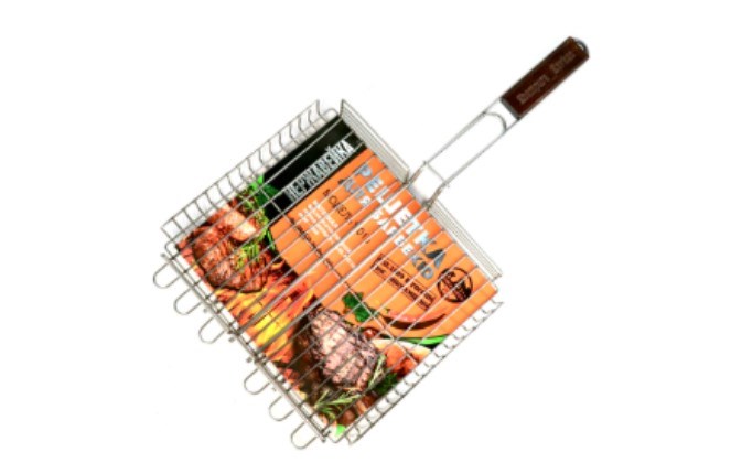 Решетка барбекю: У-016 Размер: 36х32 см Толщина прутка 6 мм и 3 мм Сталь: нержавейка AISI304 Ручка: дерево Бук Производство: Россия, ИП Рогозин Д. Л.