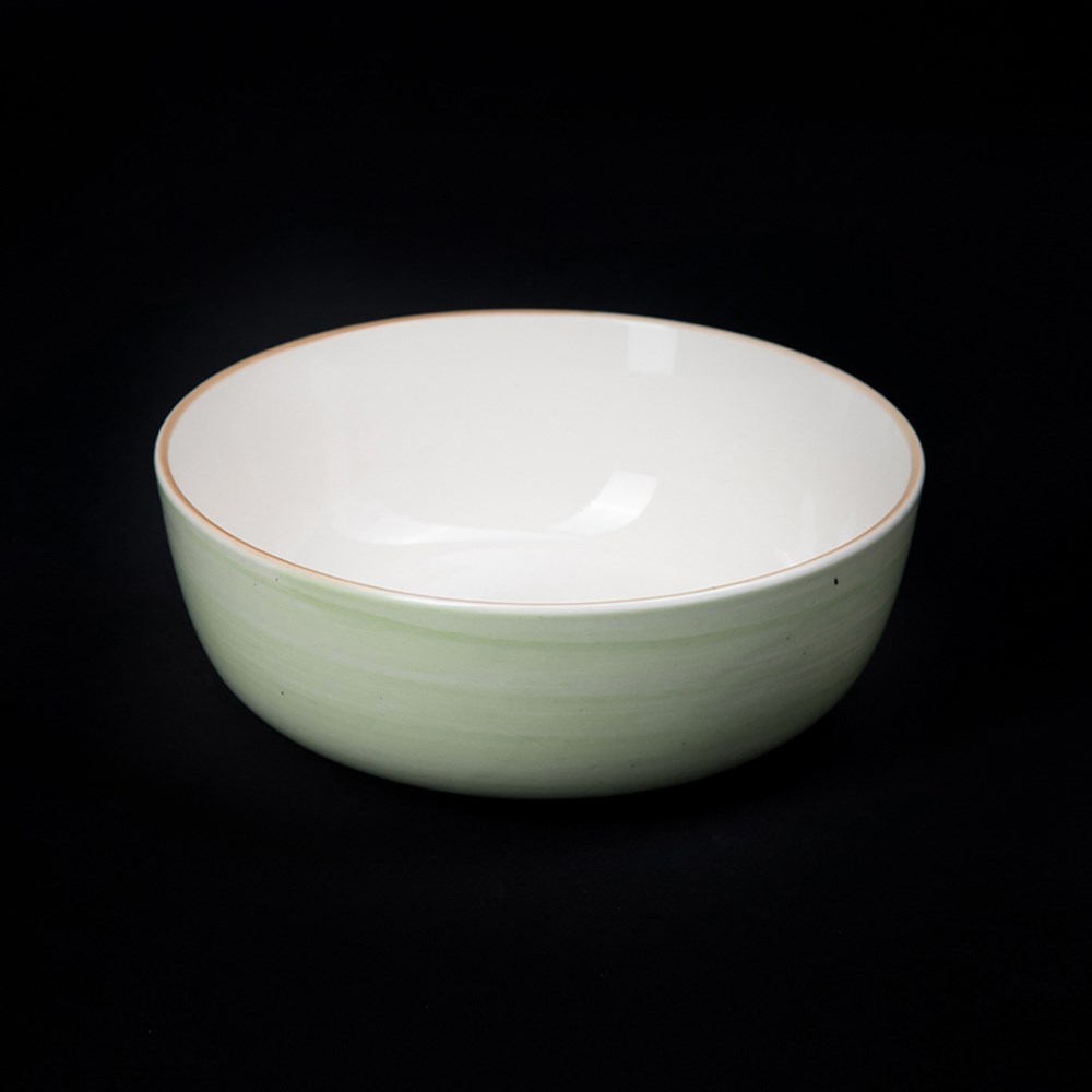 Тип посуды: салатник\; Серия: Natura\; Материал: фарфор\; Форма: круглая\; Основной цвет: зеленый\; Диаметр, мм: 165\; Номинальный объем, мл: 900\; Особенности: снаружи зеленый - внутри белый, ручная роспись\;