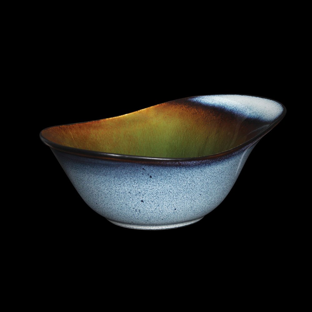 Тип посуды: салатник\; Серия: Corone Verde\; Материал: фарфор\; Форма: овальная\; Основной цвет: синий+зеленый\; Номинальный объем, мл: 450\; Размер, мм: 185х135\; Особенности: эффектарная глазурь\;