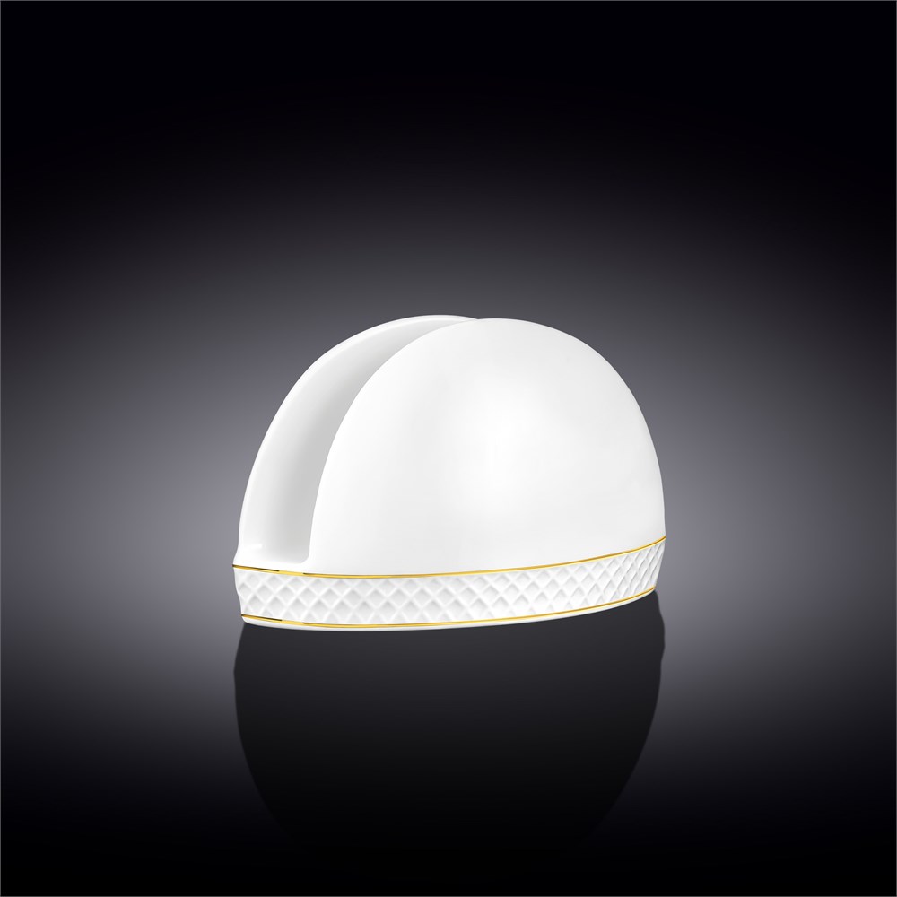 Коллекция: E[Diamond]; Цветная упаковка: S[Нет]; Использование в посудомоечной машине: S[Да]; Размер: S[12 x 7.5]; Тип: S[Салфетницы]; Цвет: S[Белый с золотым]; Использование в СВЧ: S[Да]; Бренд: E[Wilmax]