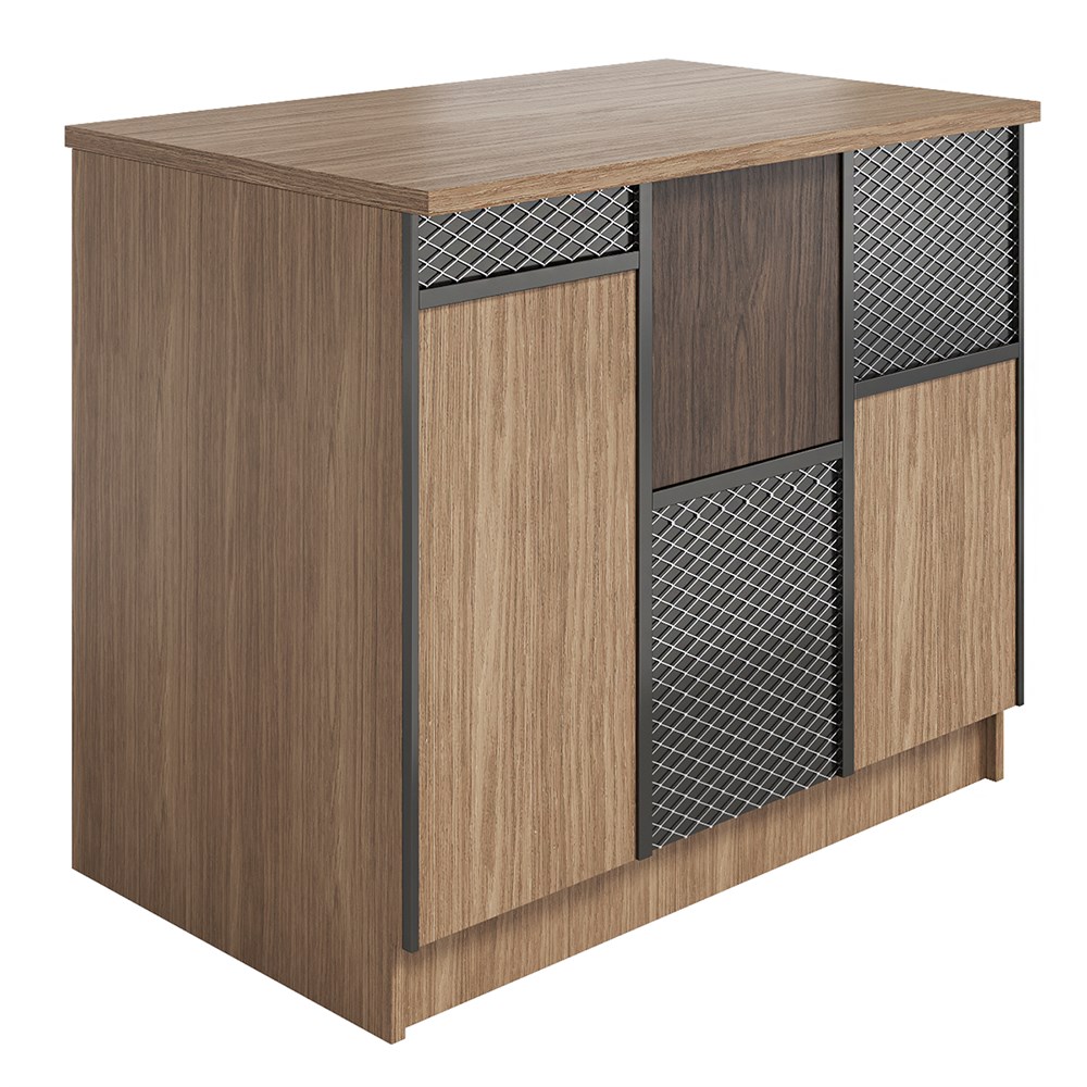 Габариты (ШхГхВ) : 1004х654х865 мм \; Материал корпуса : ЛДСП 16 мм., кромка ПВХ, сварной профиль 20х20мм, сетка ЦПВС, порошковая покраска. \; Материал фасада : ЛДСП 16 мм., кромка ПВХ 0,4 мм \; Столешница рабочая и гостевая : ЛДСП 25 мм., кромка ПВХ 2 мм\;