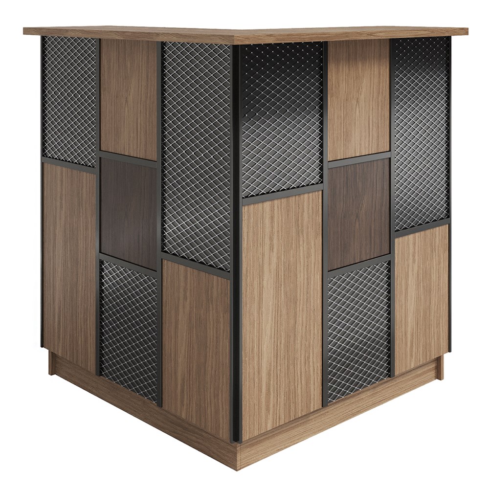 Габариты (ШхГхВ) : 1052х1052х1190 мм \; Материал корпуса : ЛДСП 16 мм., кромка ПВХ 2 и 0,4 мм. \; Материал фасада : ЛДСП 16 мм., кромка ПВХ, сварной профиль 20х20мм, сетка ЦПВС, порошковая покраска. \; Столешница рабочая и гостевая : ЛДСП 25 мм., кромка ПВХ 2 мм \; Подсветка : LED (под столешницей - дополнительная опция)\;