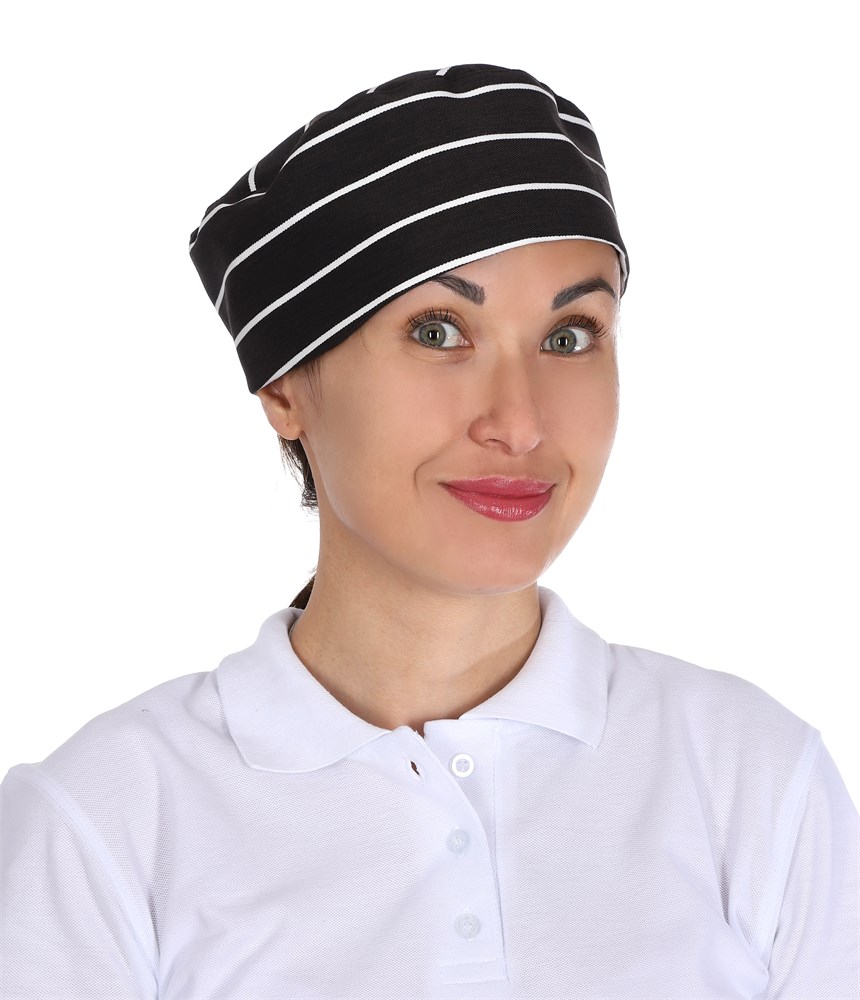 Шапочка повара «Таблетка» чёрно-белая полоска [00400]