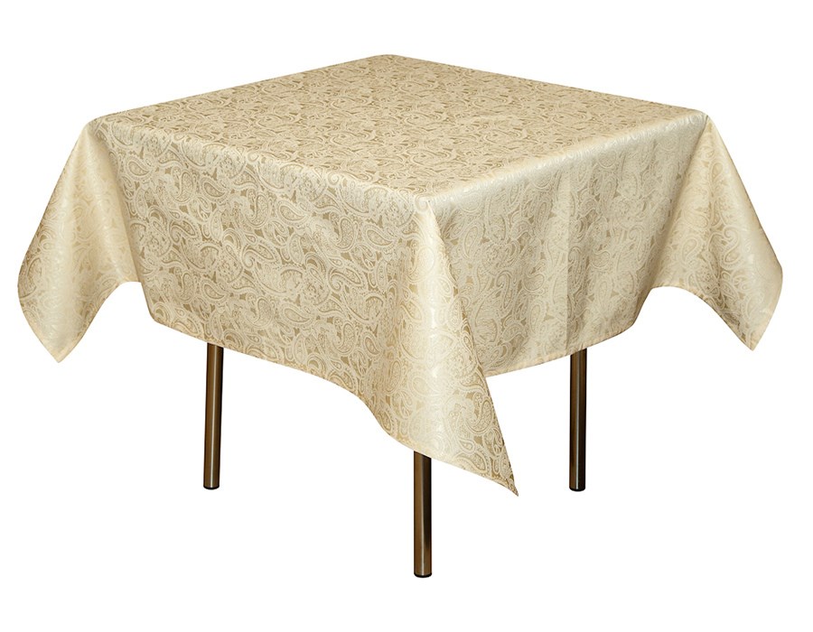 Размер : 145х145 см\; Состав ткани : 64% хлопок, 36% полиэфир\; Цвет : белый с золотом\;