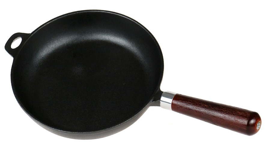 Сковорода чугунная 220/50 с деревянной ручкой Luxstahl [НЕR22]