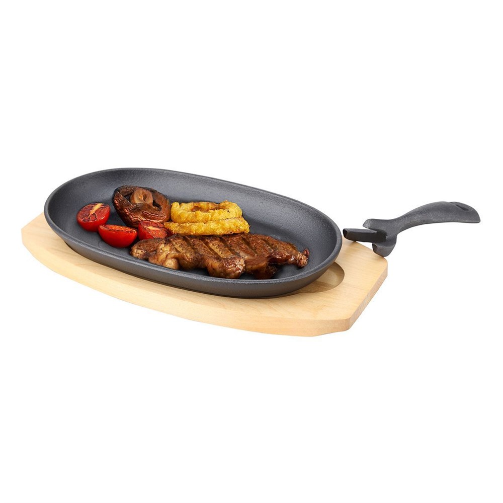 Сковорода чугунная,овальная 27.5 см на деревянной подставке, P.L. Proff Cuisine