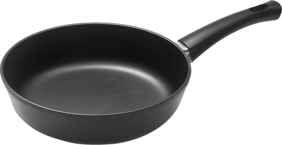 Антипригарное покрытие: да\; Индукционная посуда: нет\; Материал: алюминий\; Высота, мм: 70\; Диаметр верхний, мм: 280\; Диаметр нижний, мм: 220\; Цвет: черный\; Особенности: толщина дна 6 мм, бортов - 4 мм\;