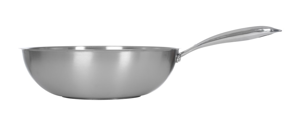 Антипригарное покрытие: нет\; Индукционная посуда: Да\; Материал: нерж. сталь\; Высота, мм: 75\; Диаметр верхний, мм: 260\; Диаметр нижний, мм: 153\; Цвет: серебристый\; Особенности: тройное плоское дно, подходит для классических плит\;