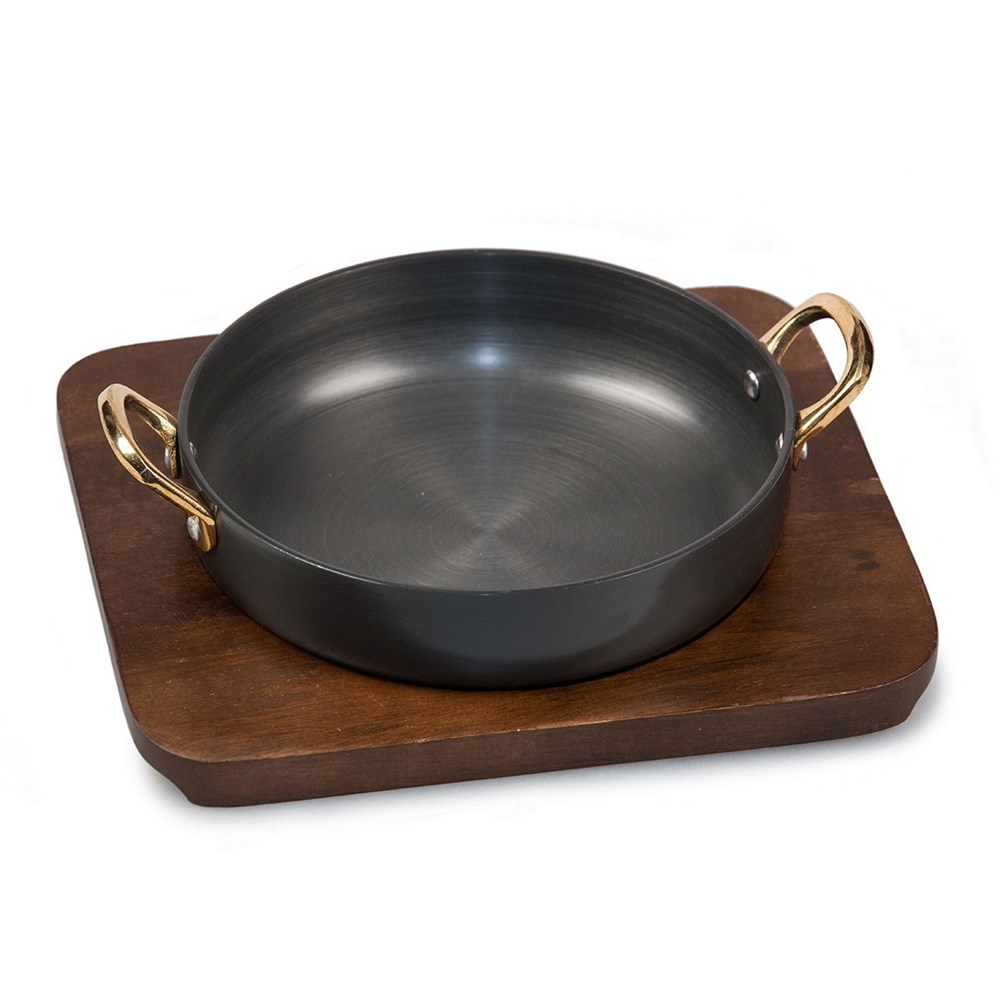 Сковородка алюминий с анодированным покрытием 750 мл для подачи на деревянной подставке, P.L. Proff