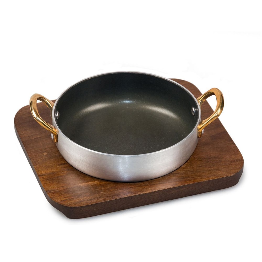 Сковородка алюминий с антипригарным покрытием 500 мл для подачи на деревянной подставке, P.L. Proff