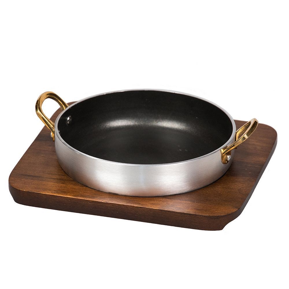 Сковородка алюминий с антипригарным покрытием 750 мл для подачи на деревянной подставке, P.L. Proff
