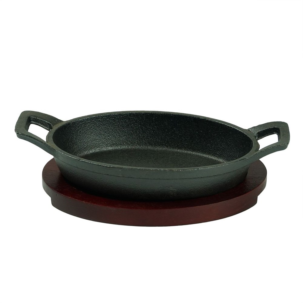 Сковородка чугунная, овальная на деревянной подставке,для подачи 15*10 cм, P.L.-ProffCuisine