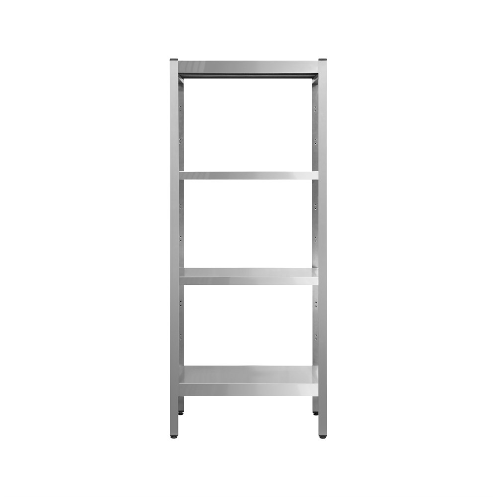 Материал каркаса: Нерж. сталь AISI 430\; Форма каркаса: Профильная труба\; Материал полок: Нерж. сталь AISI 430\; Количество полок: 4\; Ширина, мм: 600\; Глубина, мм: 540\; Высота, мм: 1 800\;