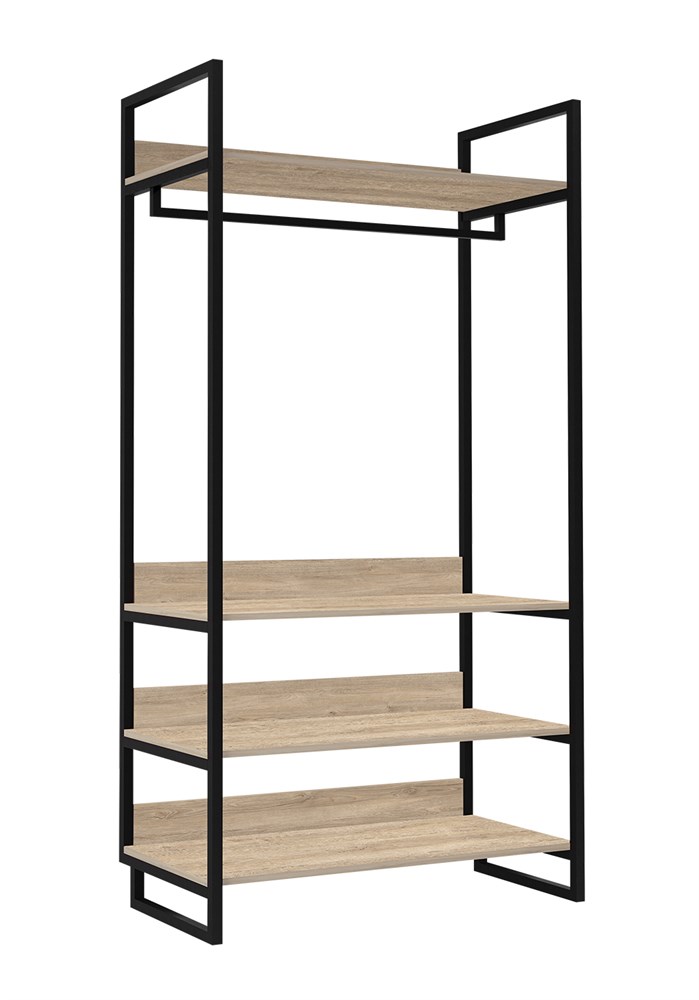 Габариты (ШхГ) : 1000х480 мм \; Высота : 1930 мм \; Материал каркаса : металл. профильная труба 25х25х1,5 мм\; Материал полок : влагостойкое ЛДСП повышенной плотности 16 мм\; Цвет каркаса : черный RAL 9005 (Муар) \; Декоры : 5 декоров – см. фото\;