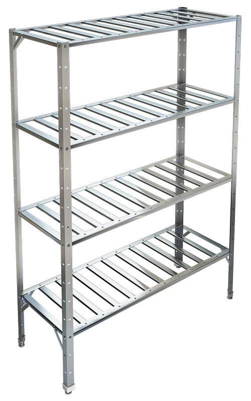 Количество полок: 4\; Материал полок: Нерж. сталь AISI 304\; Материал каркаса: Нерж. сталь AISI 430\; Форма каркаса: Уголок\; Ширина, мм: 1 200\; Глубина, мм: 500\; Высота, мм: 1 820\;
