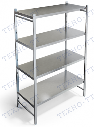 Материал каркаса: Нерж. сталь AISI 430\; Форма каркаса: Профильная труба\; Материал полок: Нерж. сталь AISI 430\; Количество полок: 4\; Ширина, мм: 1 490\; Глубина, мм: 610\; Высота, мм: 1 820\;