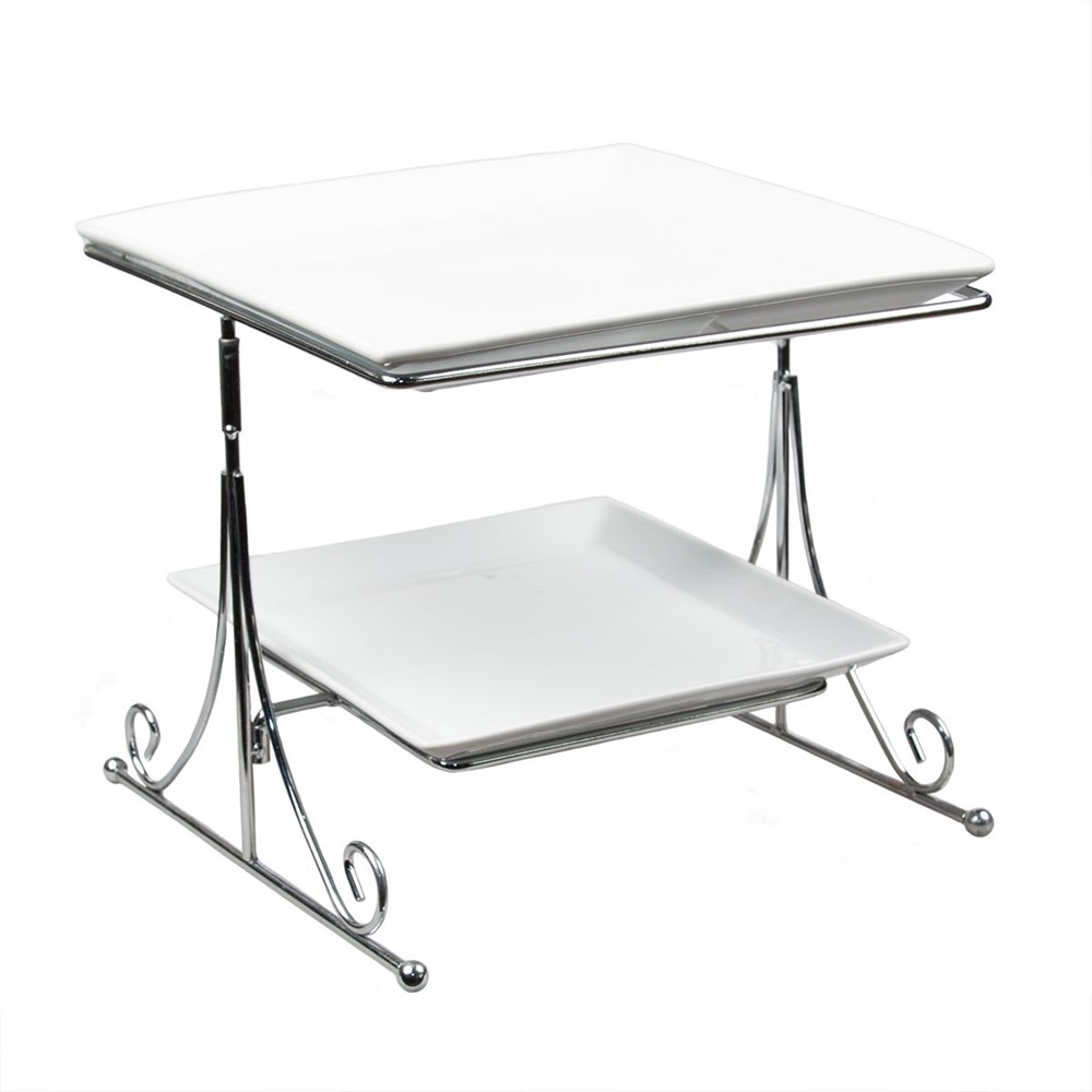 Стойка двухъярусная + 2 фарфоровых блюда (26*26 см, 22*22 см), h 25 см, P.L. Proff Cuisine