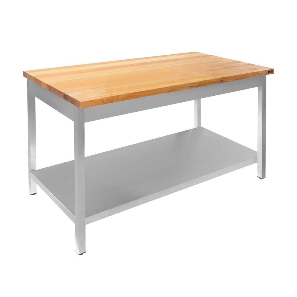 Материал столешницы: дерево\; Материал каркаса: Нерж. сталь AISI 430\; Полка: Сплошная\; Исполнение: Сборный\; Длина, мм: 1 800\; Ширина, мм: 800\; Высота, мм: 850\;