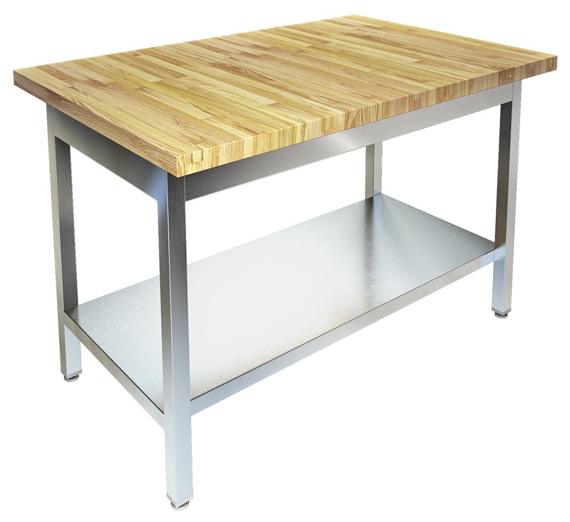Материал столешницы: дерево\; Материал каркаса: Нерж. сталь AISI 304\; Полка: Сплошная\; Исполнение: Сборный\; Длина, мм: 1 500\; Ширина, мм: 800\; Высота, мм: 850\;