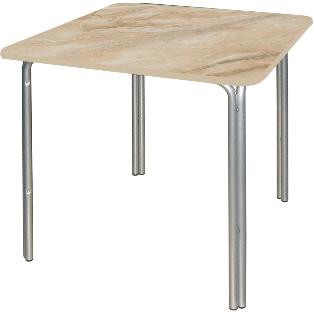 Габариты (ШхГ) : 780х780 мм\; Высота : 740 мм\; Материал столешницы : ЛДСП\; Материал каркаса : металл труба d25 мм., покрытая порошковой краской\; Цвет ЛДСП : дуб беленый, дуб сонома\; Цвет каркаса : металлик\; Вес : 12,5 кг\;