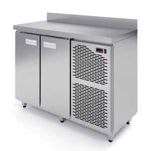 Габаритные размеры, мм: 1350х700х850\; Питание, В: 220\; Мощность, кВт: 0,55\; Расположение агрегата: Сбоку\; Тип охлаждения: Динамическое\; Материал столешницы: Нерж. сталь\; Количество дверей: 2\; Наличие борта: Да\; Т min, С°: -18\;