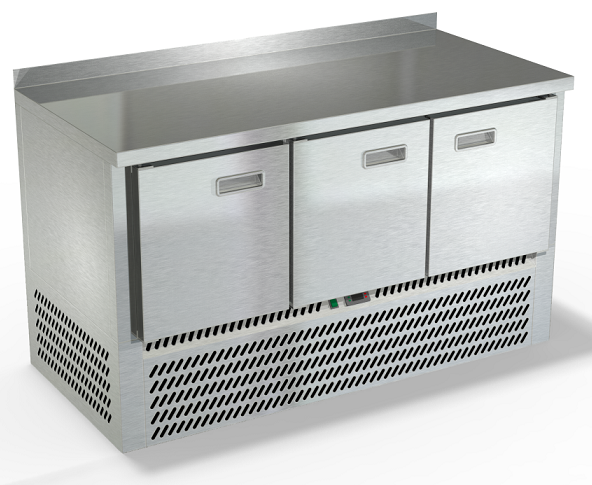 Габаритные размеры, мм: 1485х600х850\; Питание, В: 220\; Мощность, кВт: 0,57\; Объем, л: 290\; Расположение агрегата: Снизу\; Материал столешницы: Нерж. сталь\; Количество дверей: 3\; Наличие борта: Да\; Т min, С°: -18\; Т max, С°: -10\;