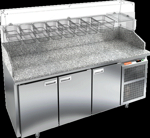 Стол охлаждаемый для пиццы HICOLD PZ3-111/GN с гранитной столешницей без витрины