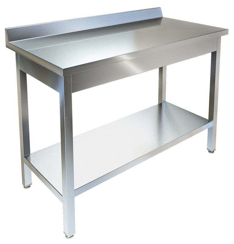 Материал столешницы: Нерж. сталь AISI 304\; Материал каркаса: Нерж. сталь AISI 304\; Усиленная столешница: Да\; Полка: Сплошная\; Исполнение: Сборный\; Длина, мм: 1 500\; Ширина, мм: 600\; Высота, мм: 850\;