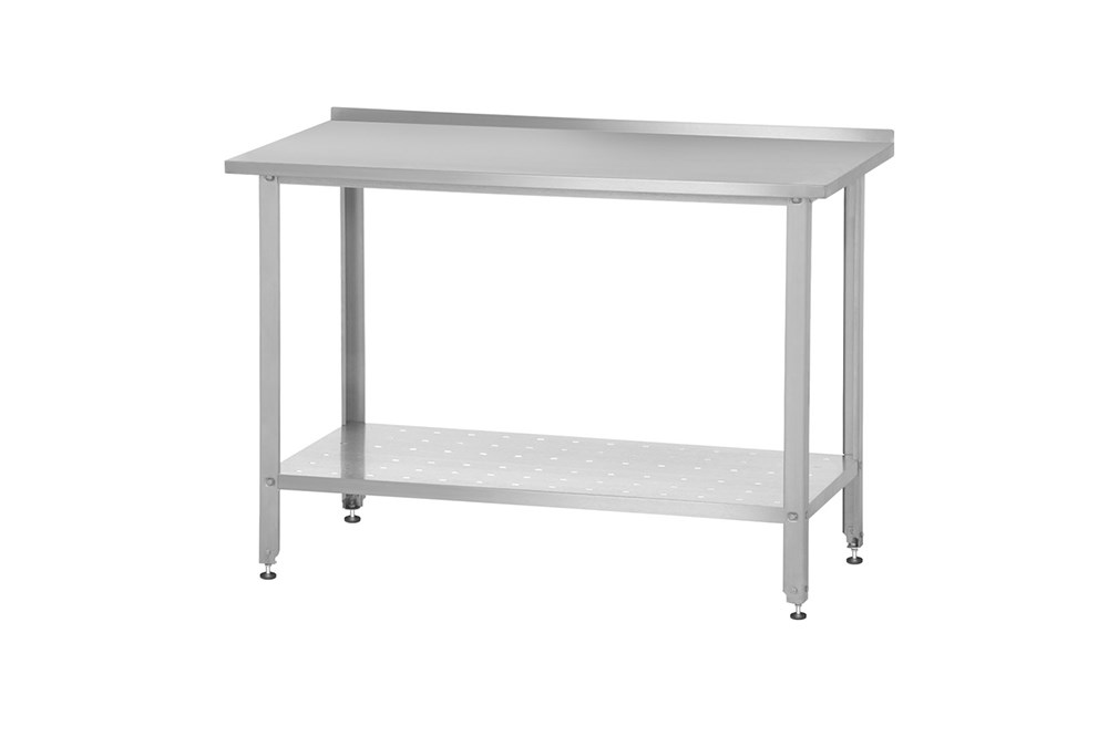 Габаритные размеры : 1200х700х860 мм\; Материал столешницы : нержавеющая сталь AISI 430\; Материал каркаса и полки : оцинкованная сталь\; Материал подложки : ДСП 16 мм\; Каркас : разборный\; Дополнительно : с бортом\;