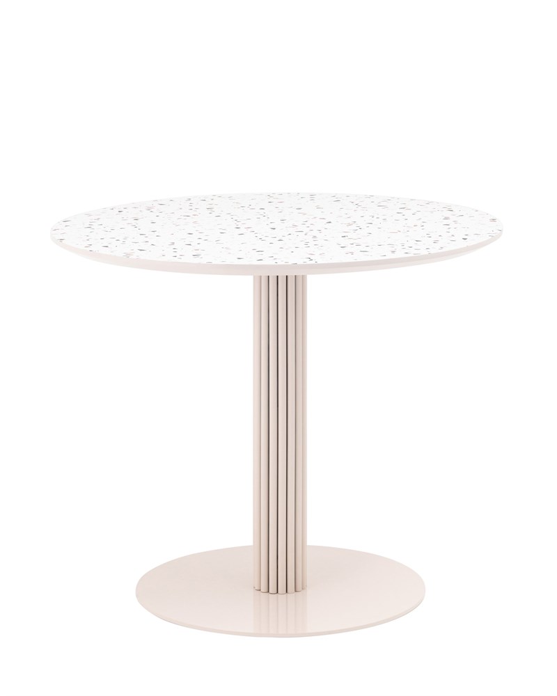 Габариты (D) : 900 мм\; Высота : 760 мм\; Материал столешницы : МДФ\; Материал каркаса : металл\; Толщина столешницы : 25 мм\; Диаметр основания стола : 580 мм\; Цвет : терраццо, мраморный/черный\; Вес : 36 кг\; Максимальная нагрузка : до 120 кг\;