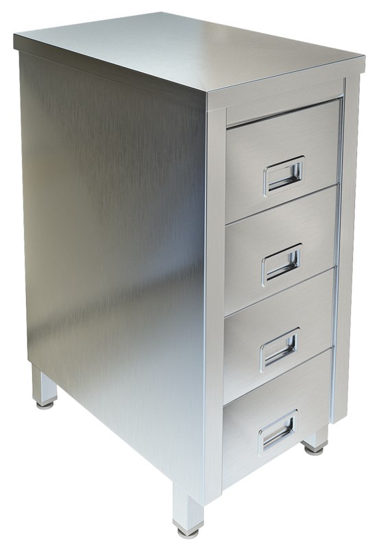 Материал каркаса: Нерж. сталь AISI 304\; Материал столешницы: Нерж. сталь AISI 304\; Количество ящиков: 4\; Длина, мм: 400\; Ширина, мм: 600\; Высота, мм: 850\;