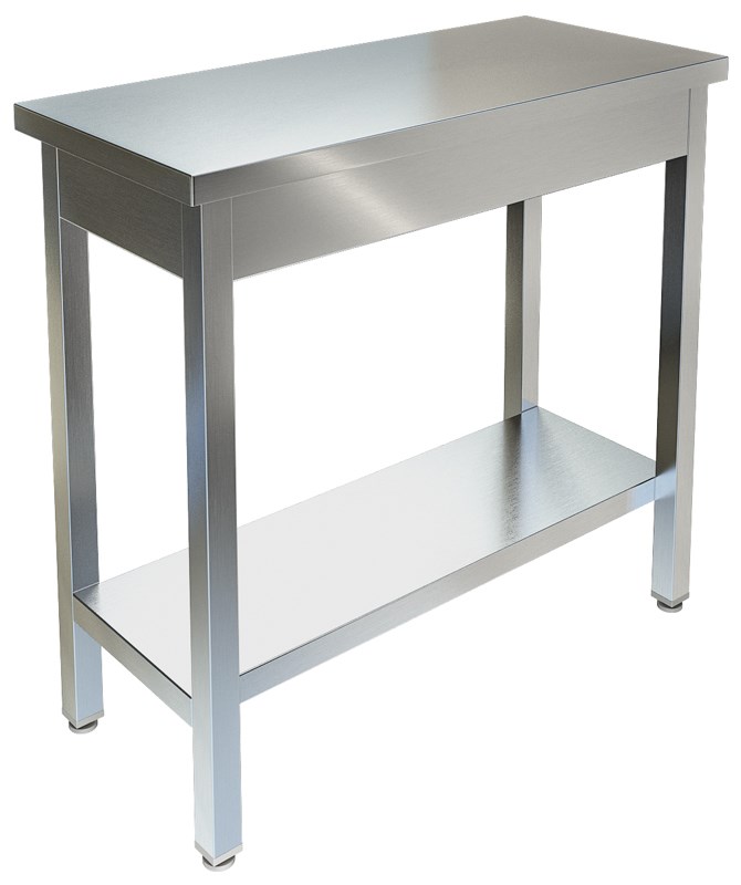 Материал столешницы: Нерж. сталь AISI 304\; Материал каркаса: Нерж. сталь AISI 304\; Усиленная столешница: Да\; Полка: Сплошная\; Исполнение: Сборный\; Длина, мм: 400\; Ширина, мм: 900\; Высота, мм: 850\;