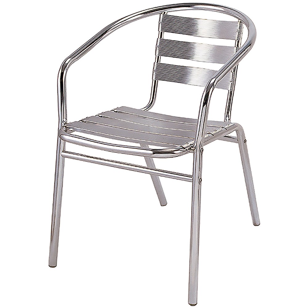 Габариты (ШхВ) : 540х580 мм \; Высота : 740 мм \; Высота от пола до сиденья : 420 мм \; Материал каркаса : алюминиевая труба \; Материал сиденья : алюминиевые планки 54x1,1мм \; Вес : 2 кг \; Каркас : алюминиевая труба, стянутая болтами, полированная до зеркального вида \; Параметры трубы : D 25 мм, толщина стенки 1,2 мм \; Сиденье и спинка : 7 алюминиевых планок 54x1,1 мм\;