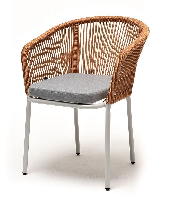 Габариты товара (ДхШхВ) : 570x620x775 мм\; Вес (Нетто) : 5 кг\; Цвет ткани : светло-серый\; Материал ткани : полиэстер 100% плотностью 300гр/м2 с влагоотталкивающей пропиткой\; Высота сидения : 490 мм\; Габариты упаковки (ДхШхВ) : 670x770x850 мм\; Материал плетения : эластичные ленты из высокопрочных полиэфирных волокон (роуп)\; Цвет плетения : оранжевый меланж\; Вид роупа : круглый\; Материал каркаса : алюминий\; Цвет каркаса : светло-серый (RAL7035)\; Фактура покрытия каркаса : муар\;