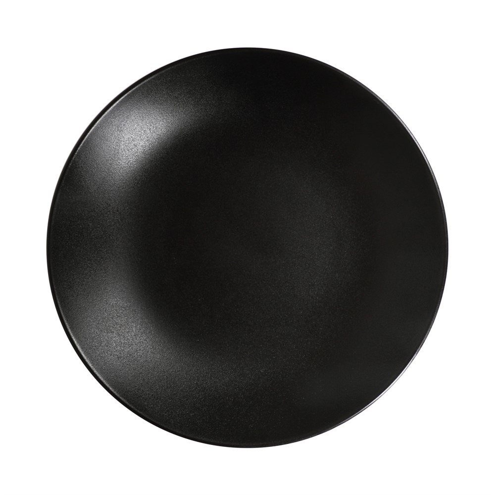 Тип посуды: тарелка\; Серия: Corone Bushido\; Материал: фарфор\; Форма: круглая\; Основной цвет: черный\; Диаметр, мм: 277\; Особенности: матовая черная глазурь\;