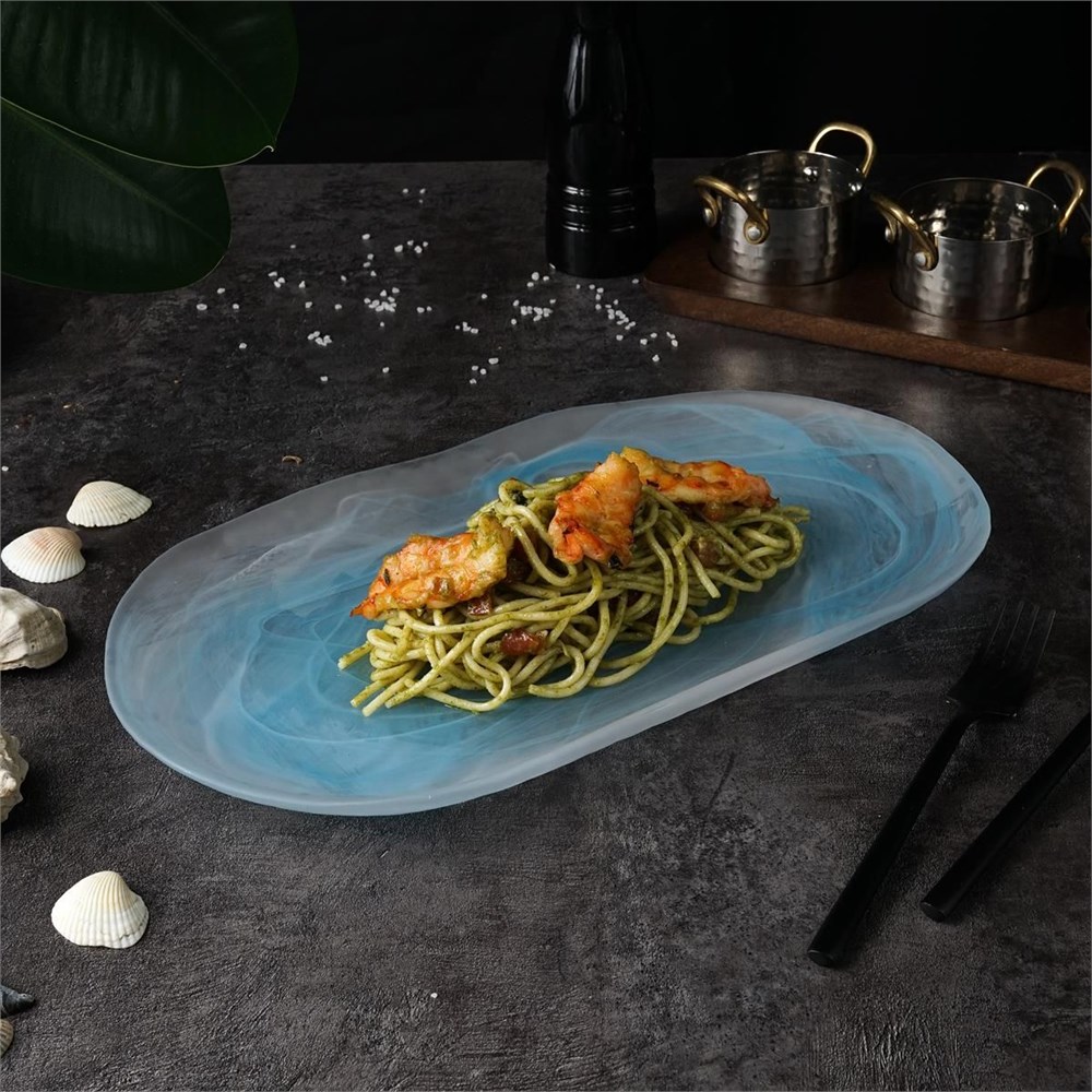 Тарелка-блюдо, матовое 36*20 см, h=3 см,материал cтекло,серия "Blue Sunset" P.L.