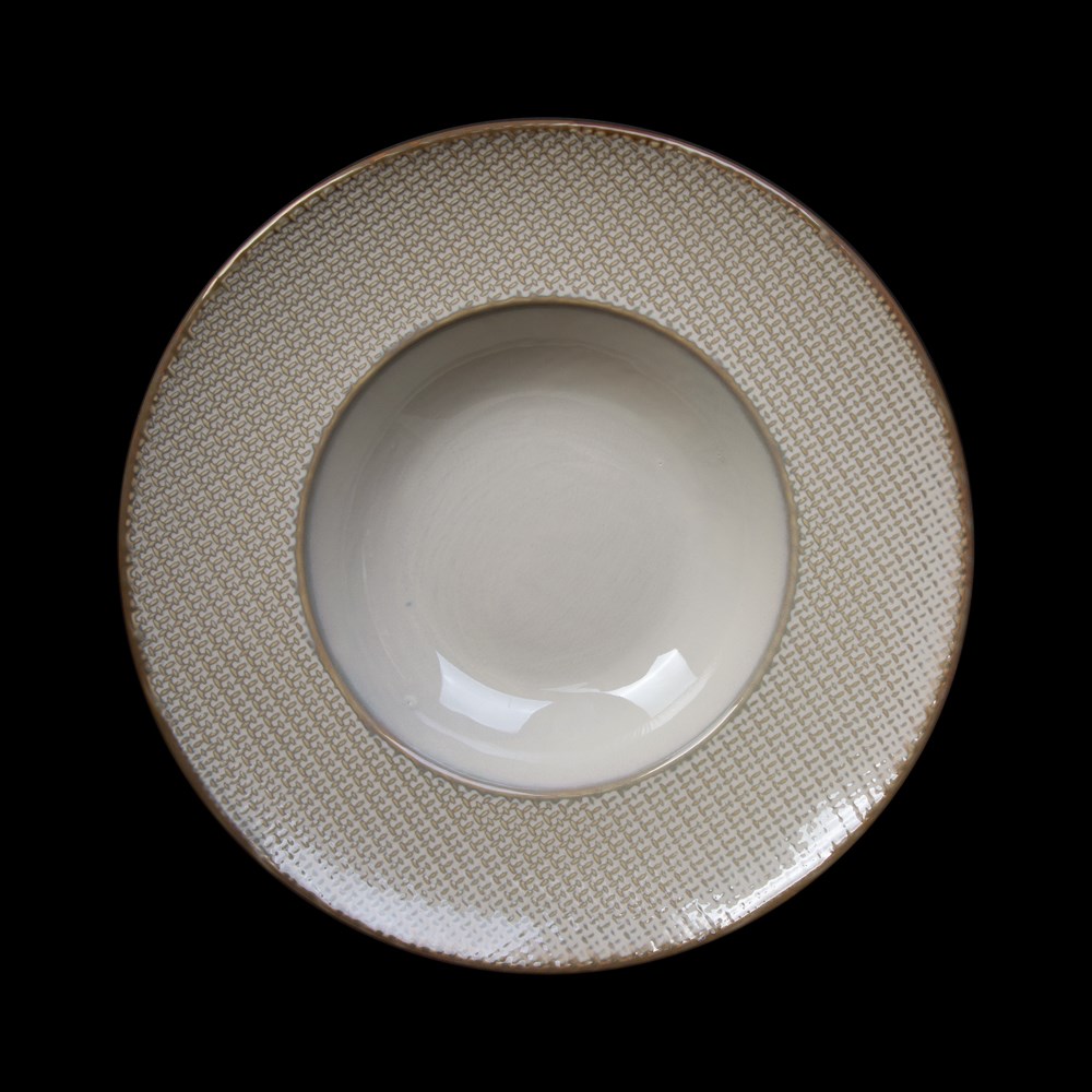 Тип посуды: тарелка для пасты\; Серия: Corone Alveare\; Материал: фарфор\; Форма: круглая\; Основной цвет: бежевый\; Диаметр, мм: 270\; Номинальный объем, мл: 370\;