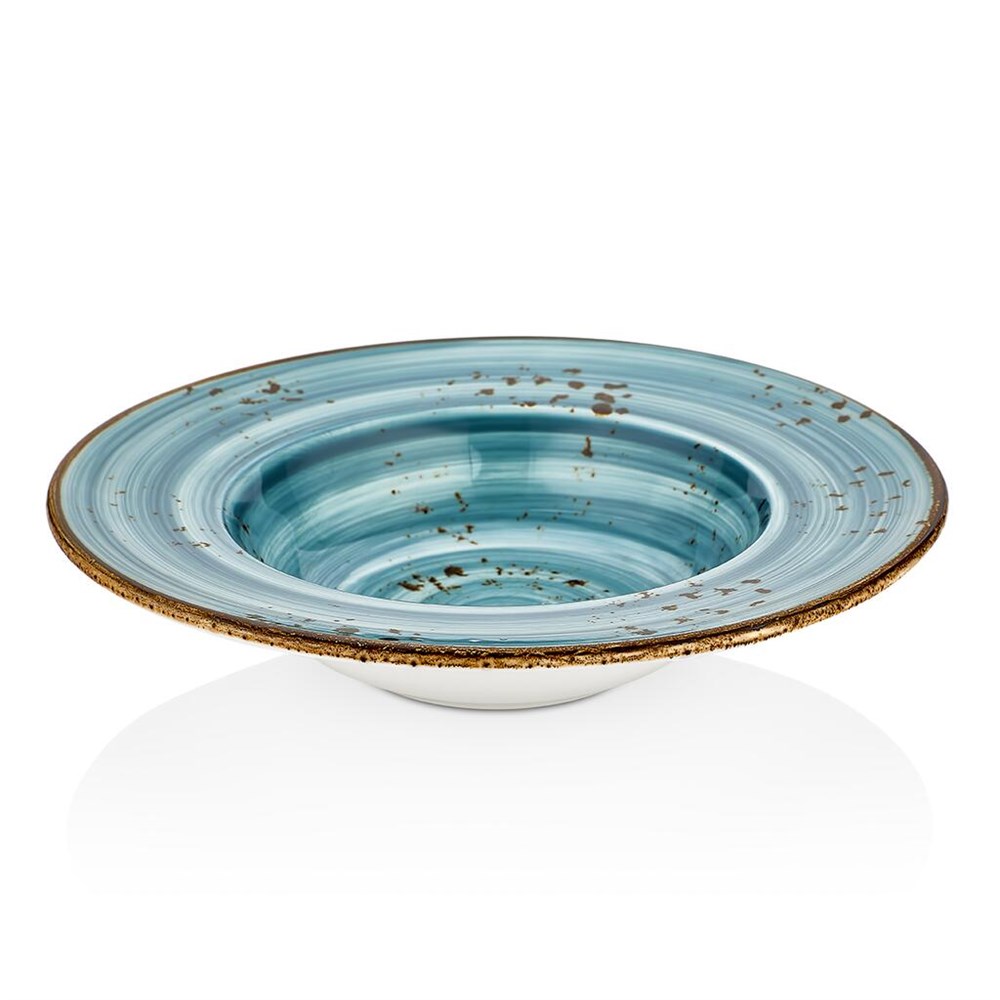 Тип посуды: тарелка для пасты\; Серия: Infinity\; Материал: фарфор\; Форма: круглая\; Основной цвет: голубой\; Диаметр, мм: 250\; Номинальный объем, мл: 400\;