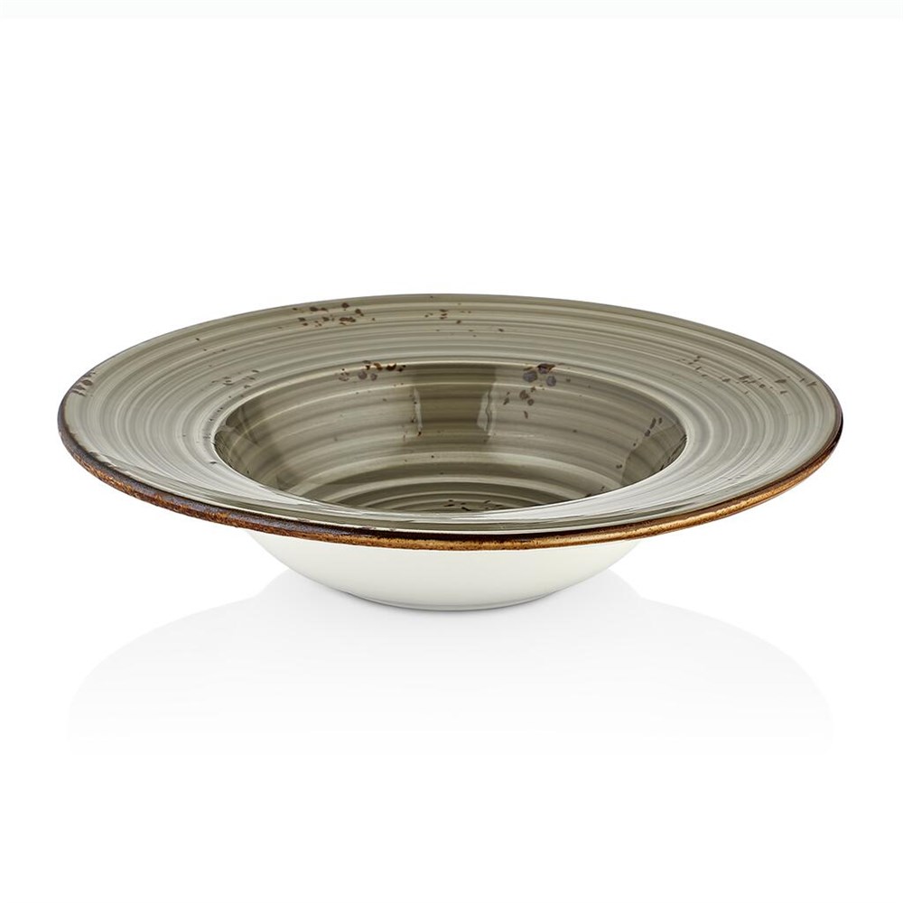 Тип посуды: тарелка для пасты\; Серия: Supreme\; Материал: фарфор\; Форма: круглая\; Основной цвет: серый\; Диаметр, мм: 250\; Номинальный объем, мл: 400\;