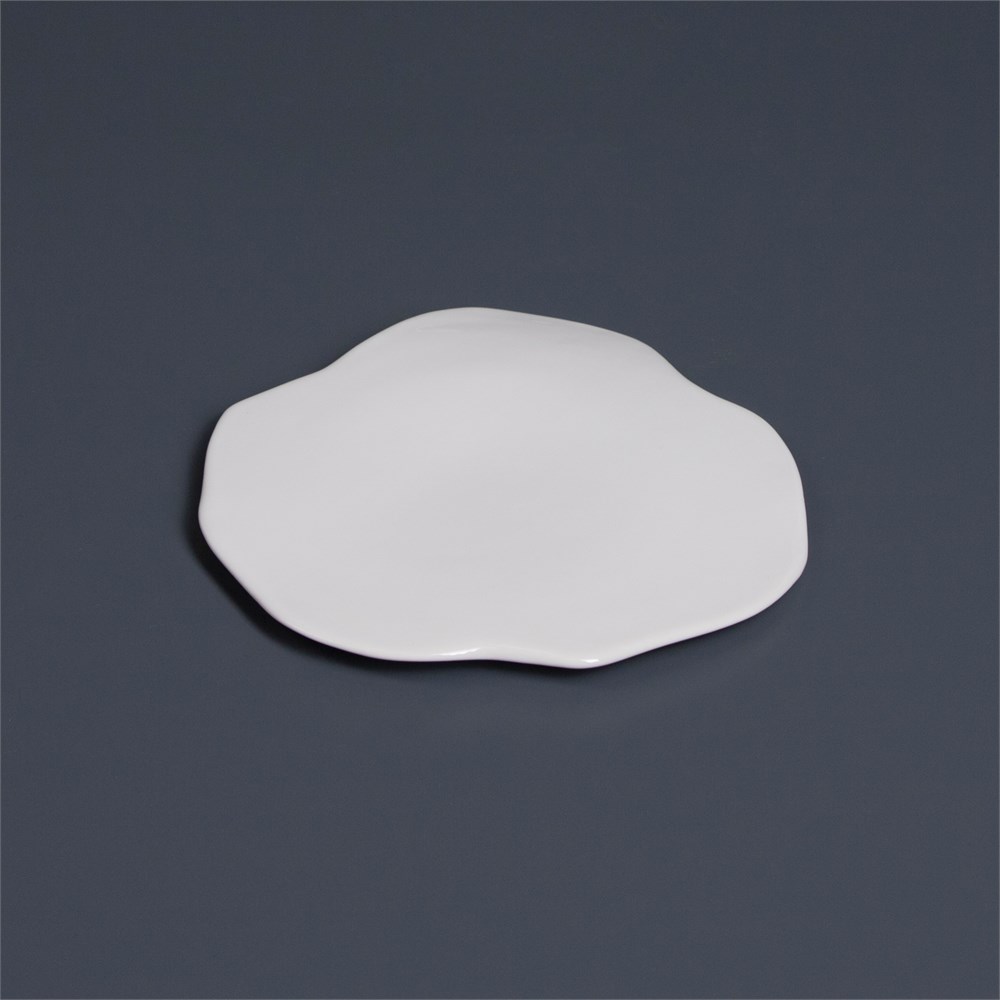 Тарелка, фарфор, 16 см, неровный край, белая