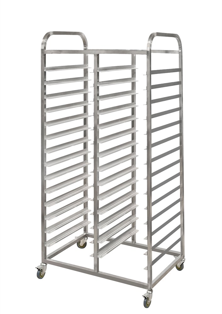 Количество уровней: 10\; Расстояние между уровнями, мм: 125\; Размер противней/подносов: 450х355\; Материал: Нерж. сталь\; Двойная: Да\; Каркас: Сварной\; Тормоза на колесах: Да\; Габаритные размеры, мм: 755х510х1690\;