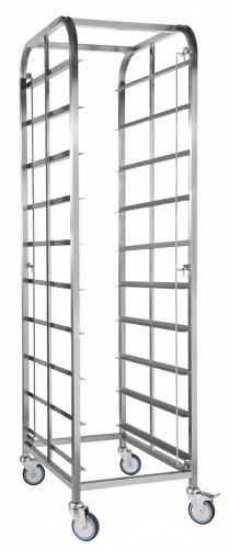 Количество уровней: 10\; Расстояние между уровнями, мм: 160\; Размер противней/подносов: 430х550\; Материал: Нерж. сталь\; Тормоза на колесах: Да\; Габаритные размеры, мм: 495х685х1840\;
