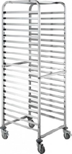 Количество уровней: 15\; Размер противней/подносов: GN1/1\; Материал: нерж. сталь AISI 201\; Каркас: Разборный\; Тормоза на колесах: Да\; Габаритные размеры, мм: 380х550х1480\;