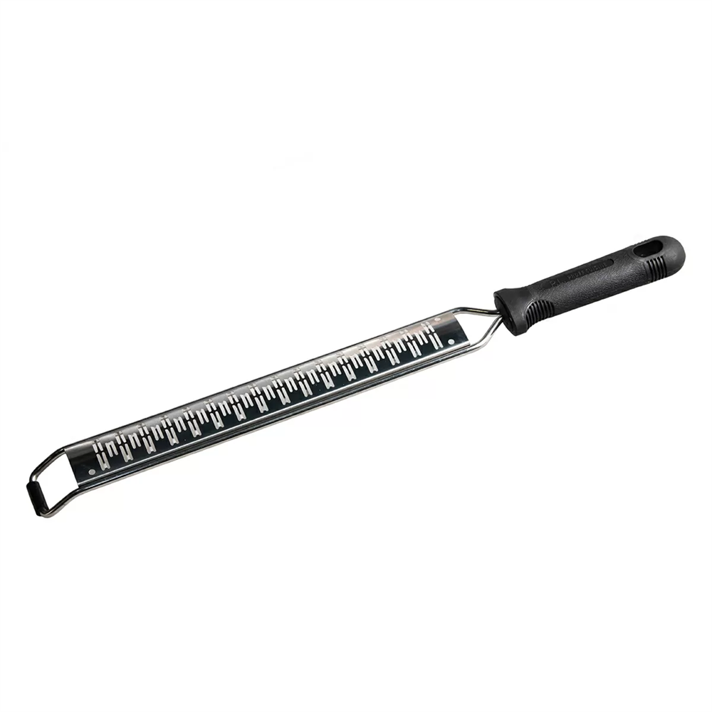 Размер : 380х35 мм\; Длина ручки : 105 мм\; Материал : нержавеющая сталь/пластик\; Ленточное двухстороннее лезвие : да\; Размер рабочей поверхности : 220х30 мм\; Ячейка : 11х1,1 мм\; Предназначение : твердые сыры, фрукты и овощи, чеснок, масло сливочное, шоколад, кокос\;