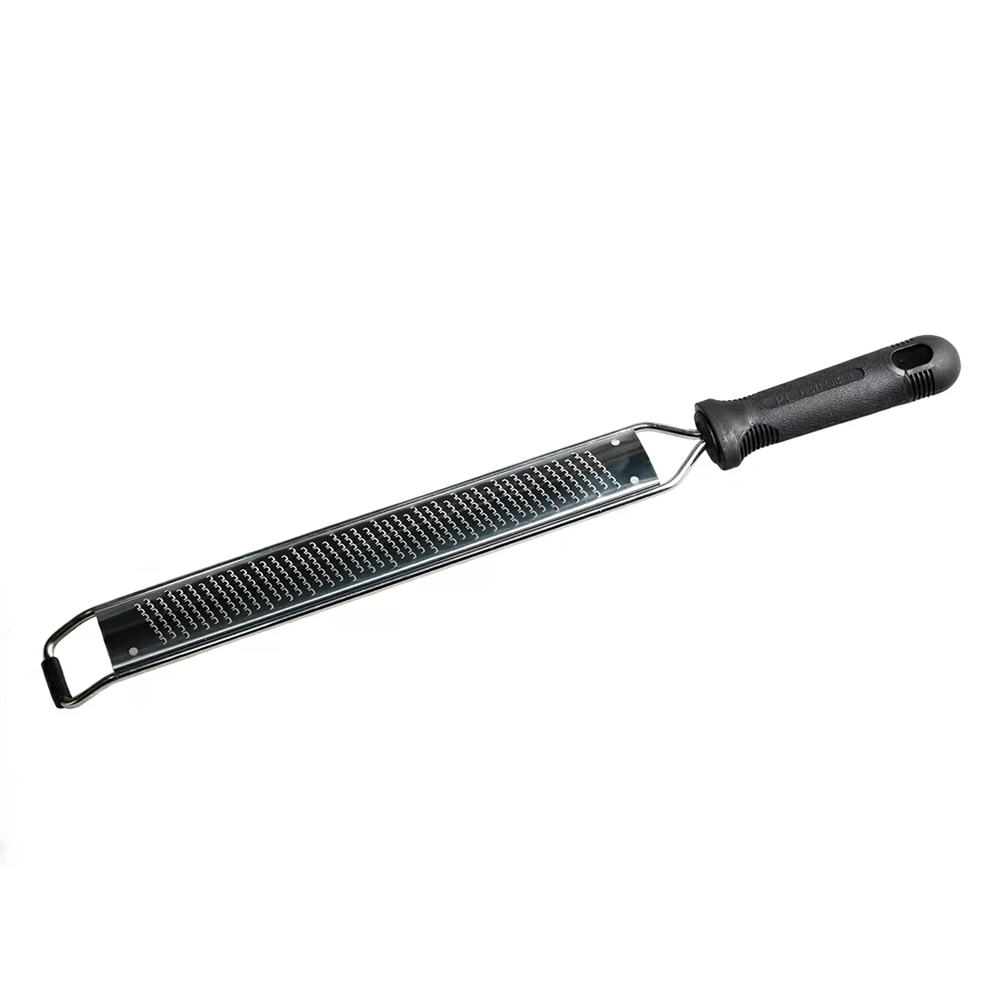 Размер : 380х35 мм\; Длина ручки : 105 мм\; Материал : нержавеющая сталь/пластик\; Односторонняя : да\; Размер рабочей поверхности : 220х30 мм\; Ячейка : 2,5х2 мм\; Предназначение : цедра, твердые сыры, мускатный орех, корица, шоколад, имбирь, орехи\;