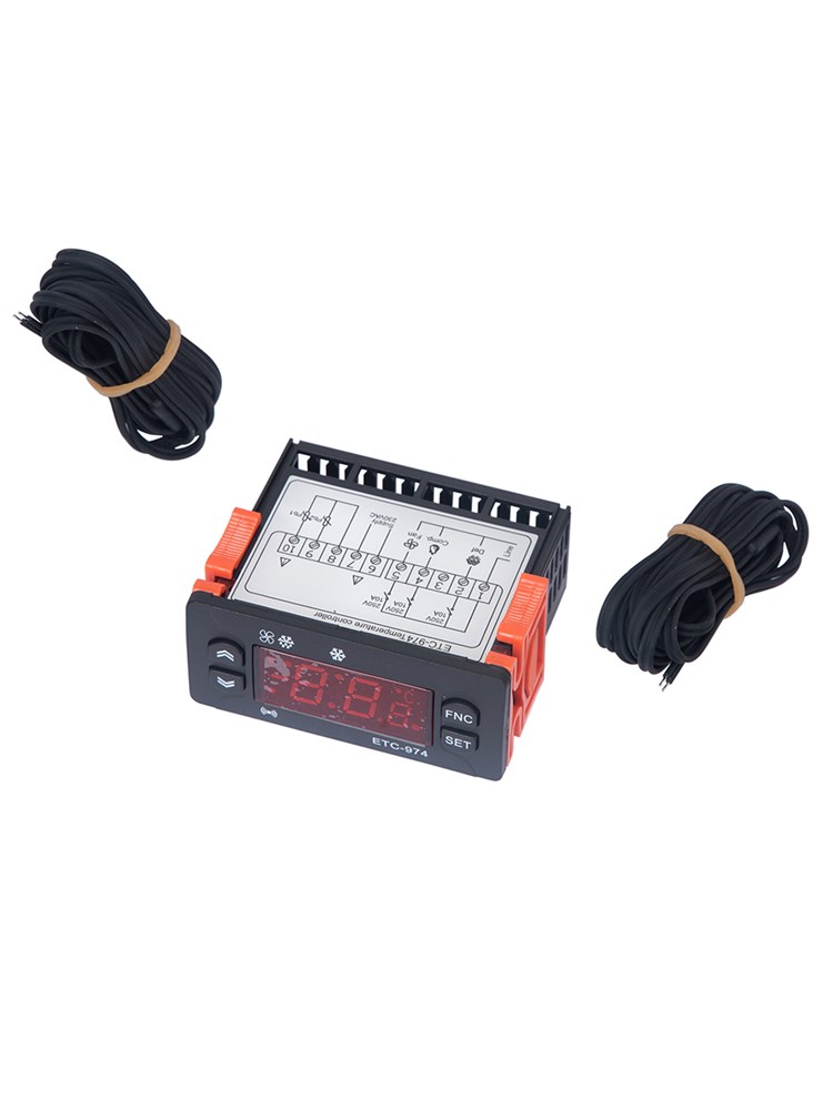 Цифровой контроллер температуры ETC-974, два датчика, оттайка