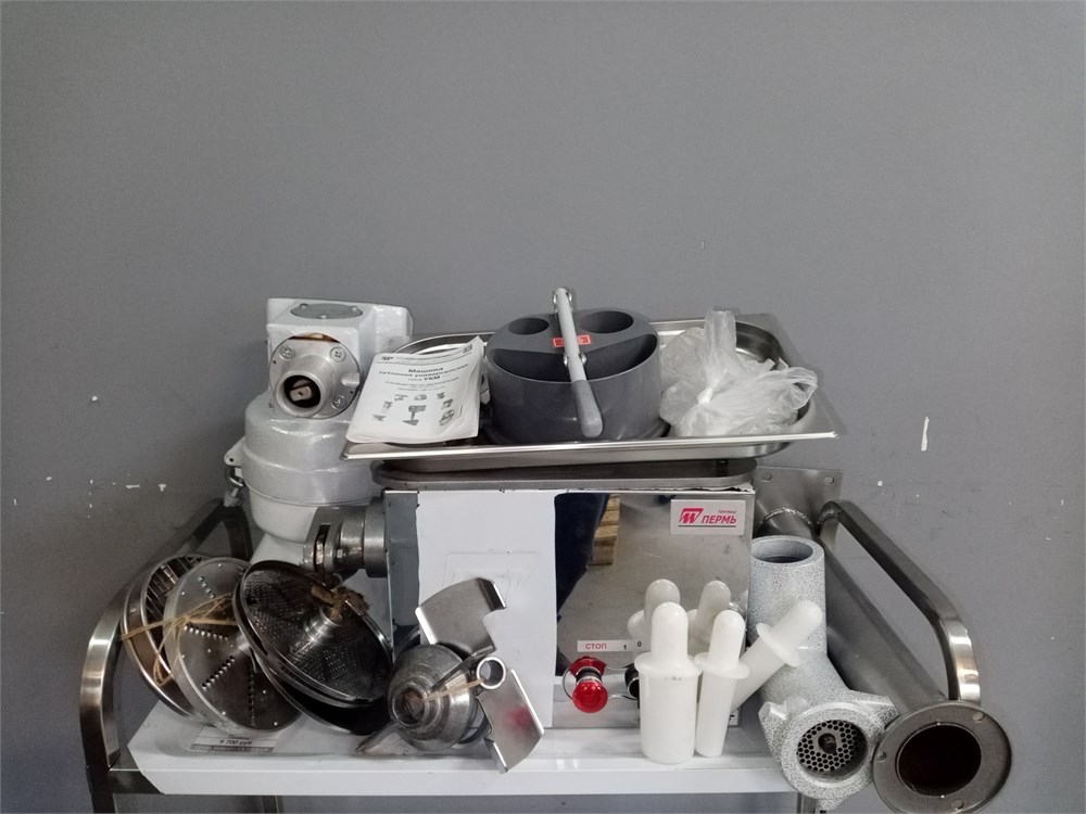 Состояние товара : новый\; Вес : 82 кг \; Габаритные размеры : 958х587х577 мм\; Мощность : 1.1 кВт \; Напряжение : 380 В \; Производительность : 250 кг/час \; Функции : овощерезка, протирка, мясорубка \; Установка : напольный \; Причина уценки : уценка, без упаковки\; Страна-производитель : Россия\;